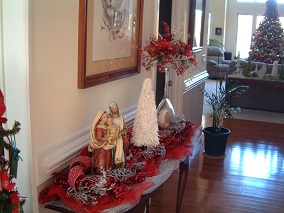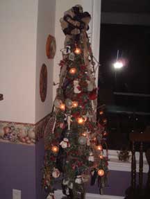 Entrance hall - give-a-way tree. Each year I make ornaments and every guests takes one home.