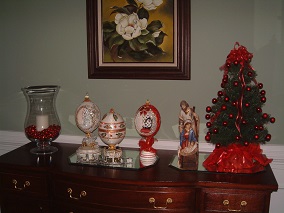 Santas on the china buffet in the breakfast room.