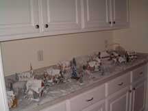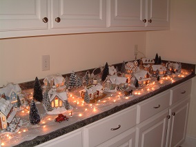 Kinkade snow village in butler's pantry.