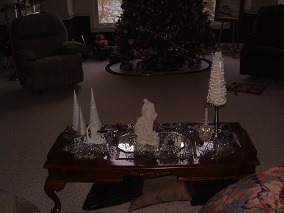 Nativities on coffee table; all white and silver.-2012