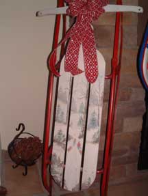 Old sled that I painted a snow scene on. I use this sled by the fireplace each year.