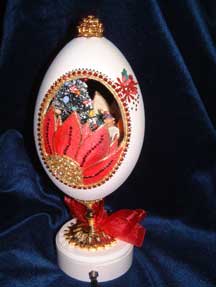 Poinsettia Flowers - an Ostrich shell covered with beads and jewels. A Dot Cannon design, made by Kay