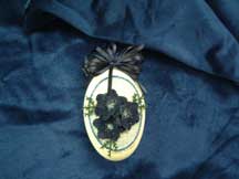 Rhea egg is cut to hinge open. The holly leaves on top are hinged to open or close. Kay's design.