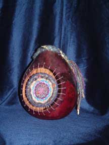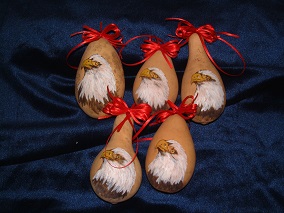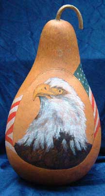 I designed this beautiful eagle gourd after the attack of 9/11. It is woodburned and then painted with Gilders Paste paints. It was featured in the American Gourd Society magazine and also is featured on the Gilders Paste website, with complete instructions. www.gilderspaste.com Original design by Kay.
