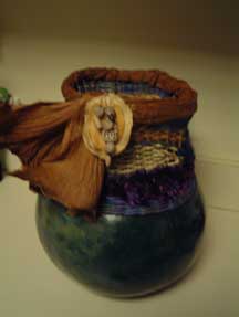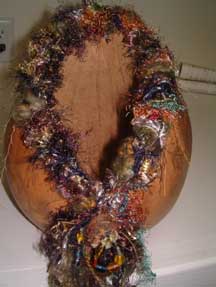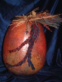 Woven top gourd. I learned this technique at the annual Cherokee Gourd Gathering held each June in Cherokee, NC. Wonderful event; plan to attend!