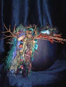 Pine Straw Beauty - pine needles are woven down the front and around the rim. Designed and made by Kay.