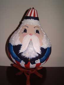 Uncle Sam gourd. Featured on the cover of the American Gourd Magazine, Summer 2008.An original design by Kay.