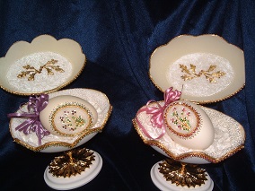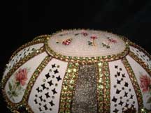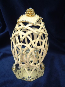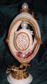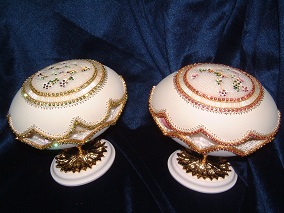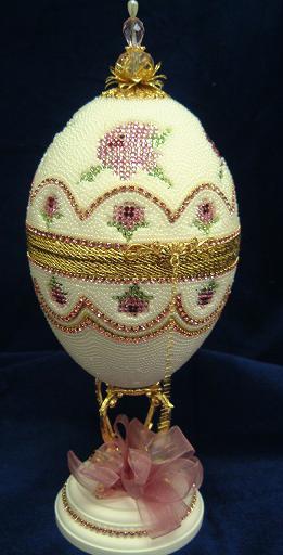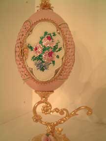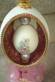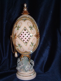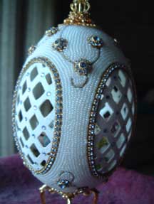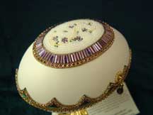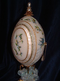 The 3 pictures above show eggs with 'cross stitch' worked on egg top. These are actually worked with Swarovski jewels and faux pearls.