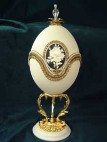 Black Cameo jewel egg with music box. Designed and taught to the S. C. Egg Art Guild, this design was also the Egg of the Month for March for the IEAG.