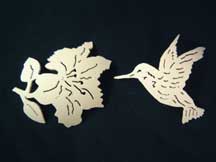 Hummingbird in a rhea with lots of lattice and amethyst stones. Designed by Kay