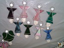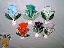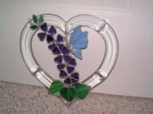 Garden stake; mosaic stained glass; made from old stained glass panels from our church, Mountain View UMC. Panel given to the Epworth Sunday School Class for the garden in memory of Lee Crawford.