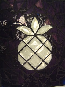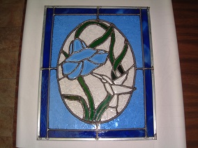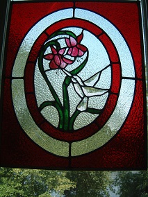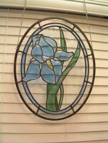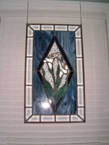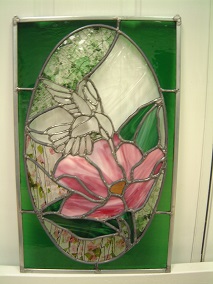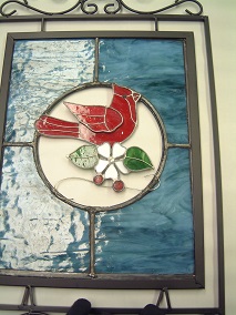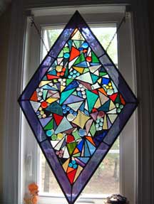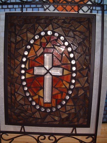Panel for Benny's office; made from glass from the discarded windows of Mountain View UMC in Kingsport, TN.